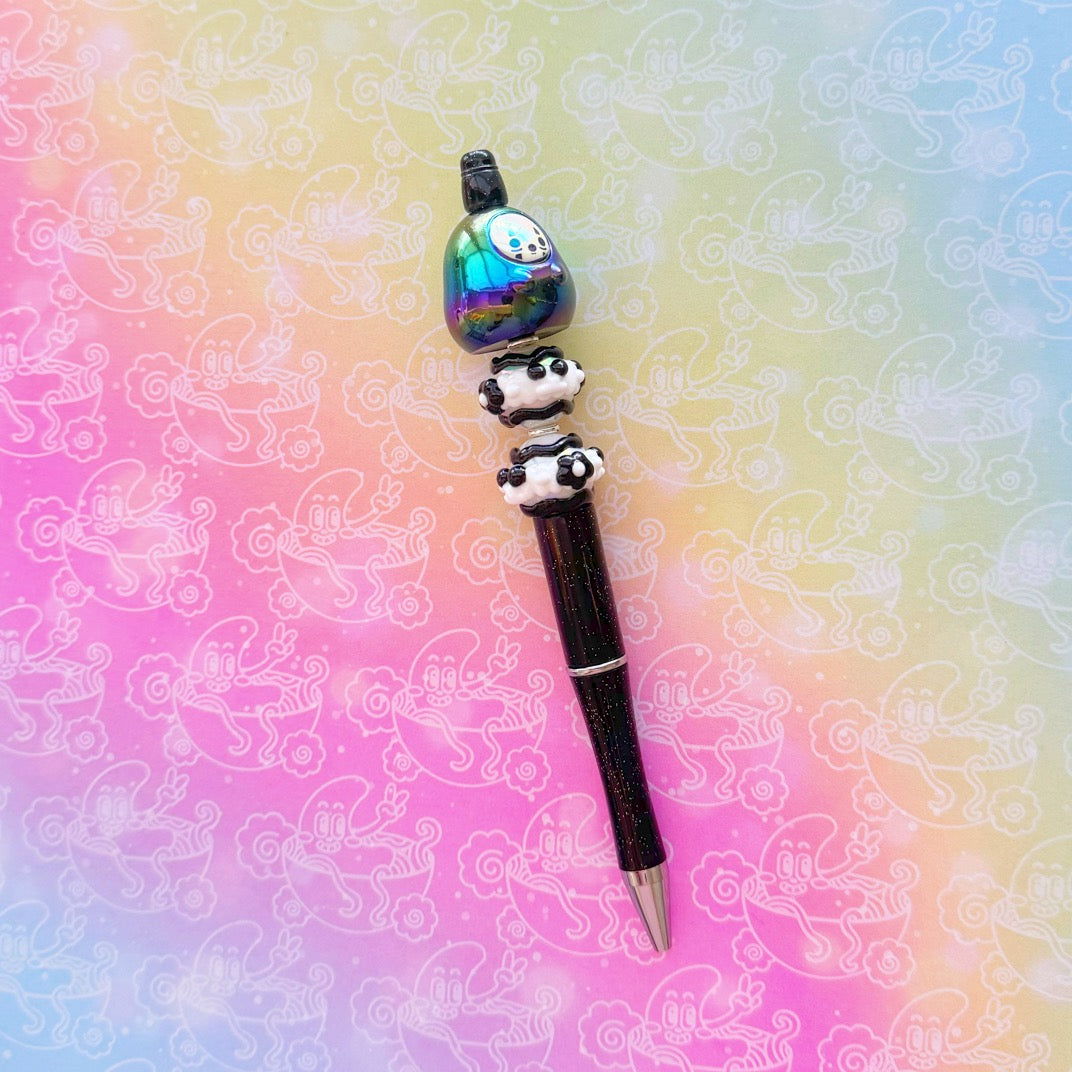 This beaded pen is perfect for adding whimsy to your desk. It writes in black ink and uses a twist feature to release the ballpoint for writing.