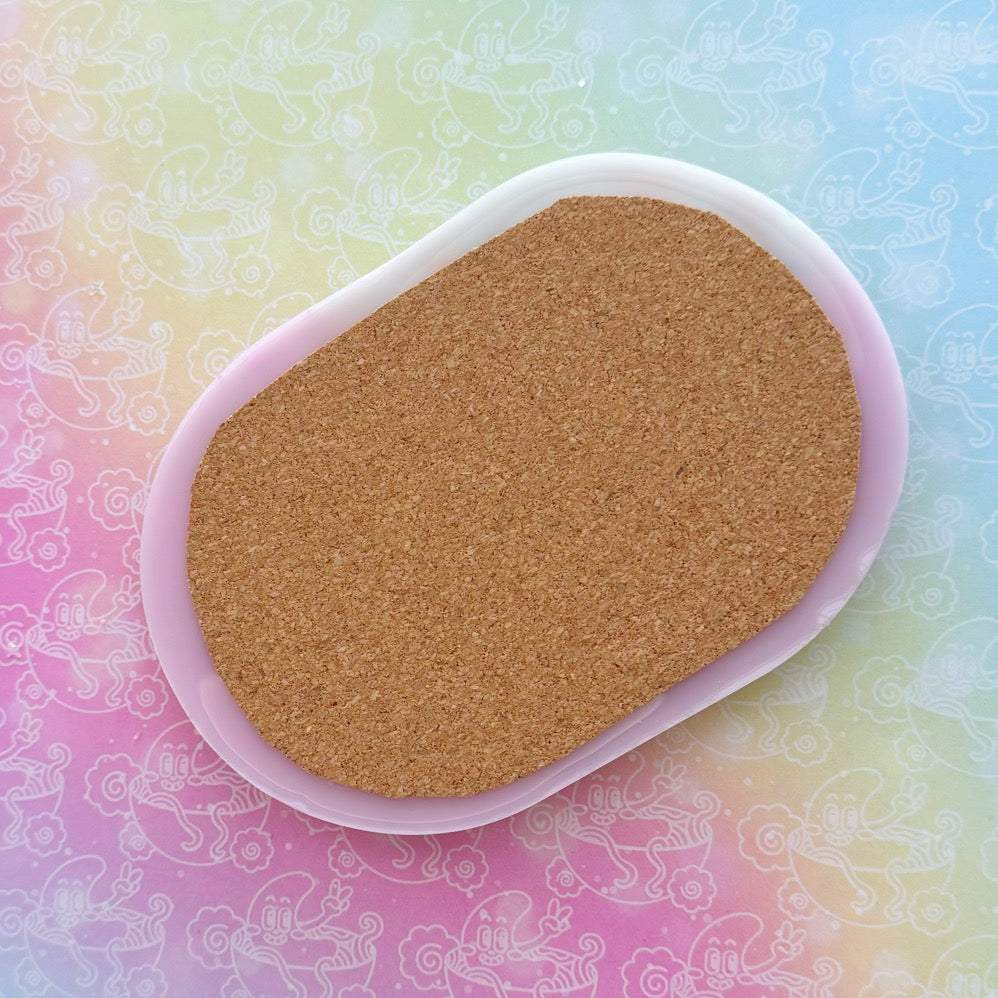 This is a resin tray that measures 4x4 inches. It is perfect for holding jewelry and knickknacks on side tables and dressers.